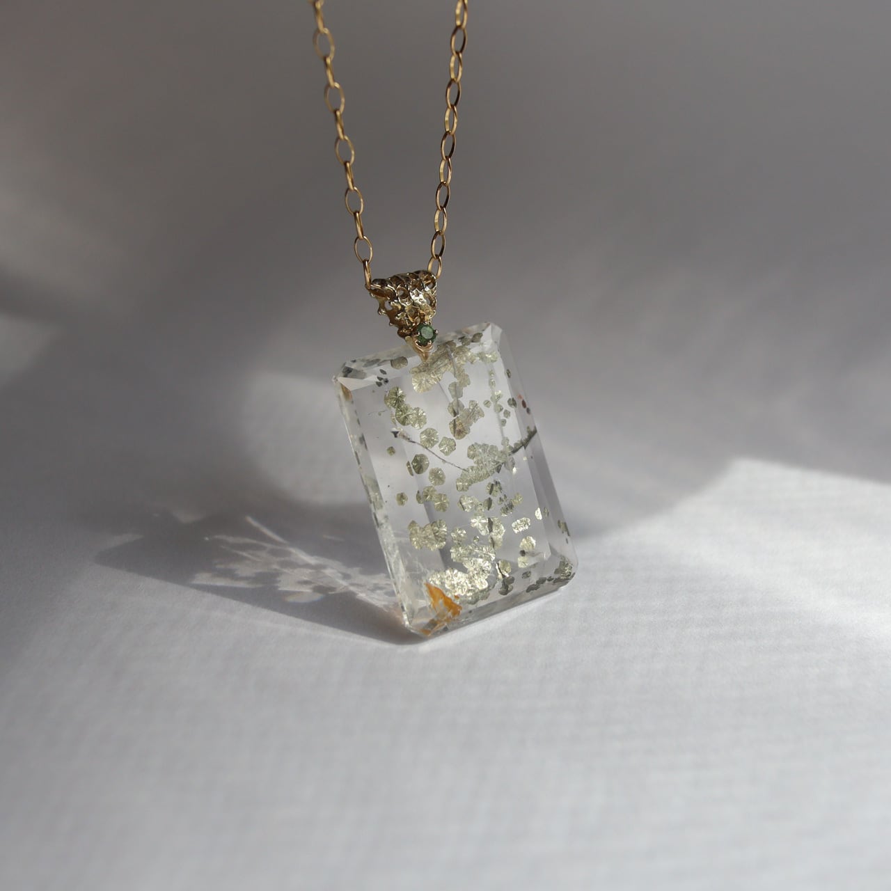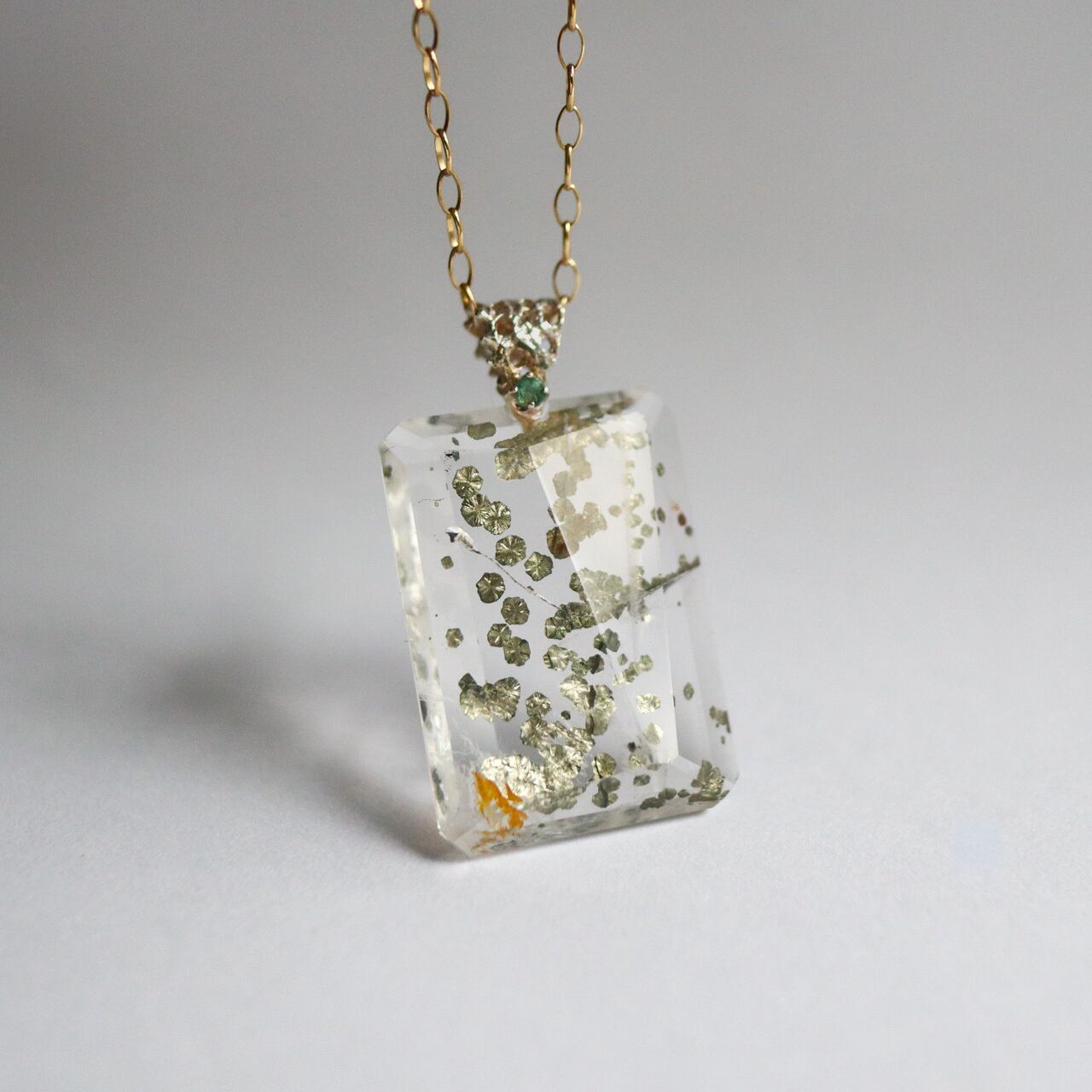 風景画をイメージする美しい内包物のパイライトインクォーツに