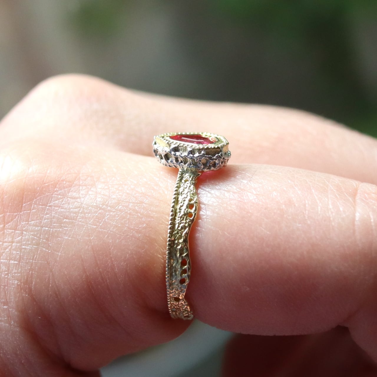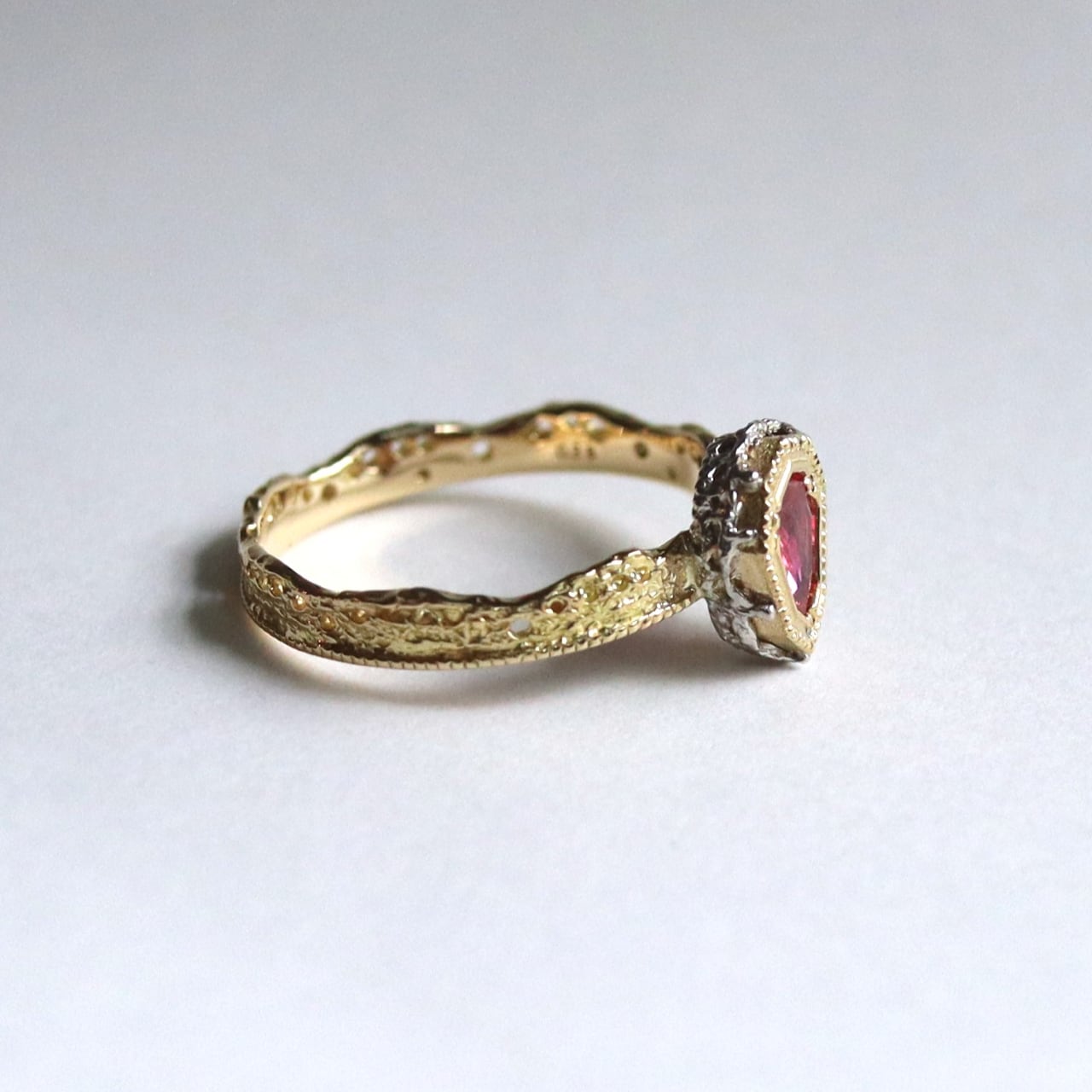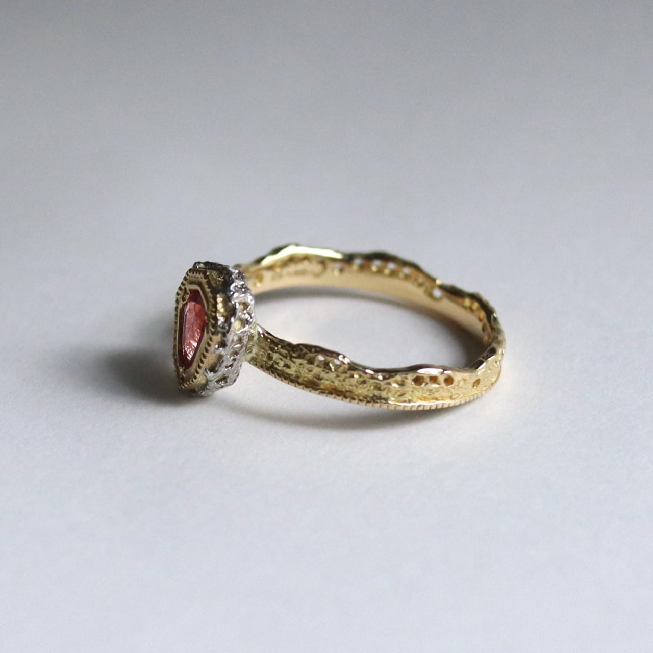 小さな石枠に施すレースとの、新たなバランスを思い描きながら、