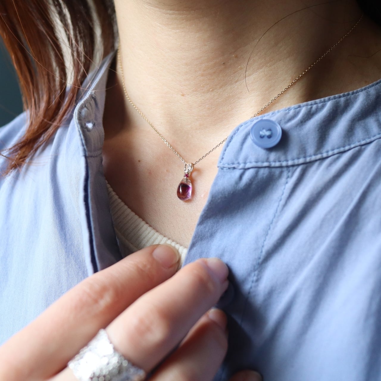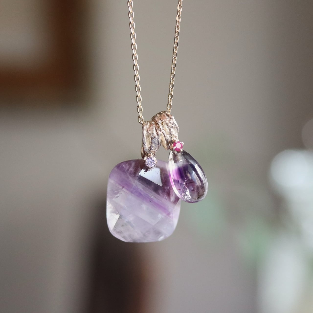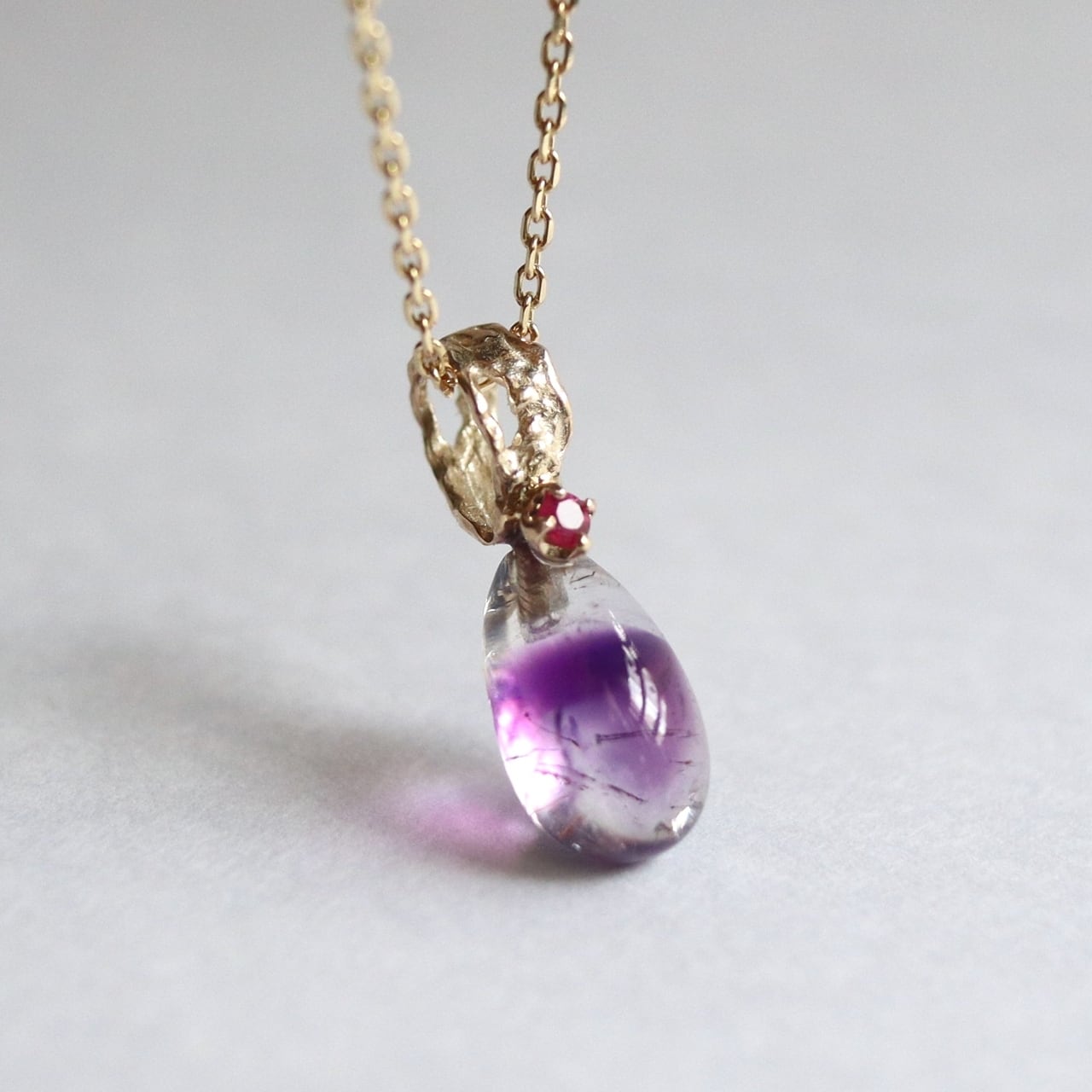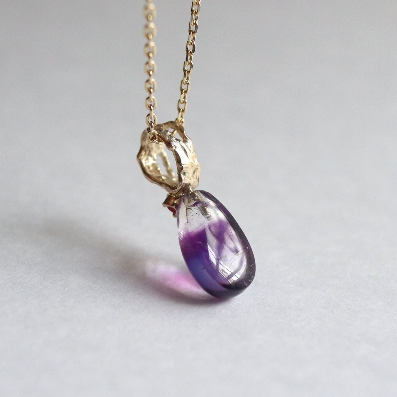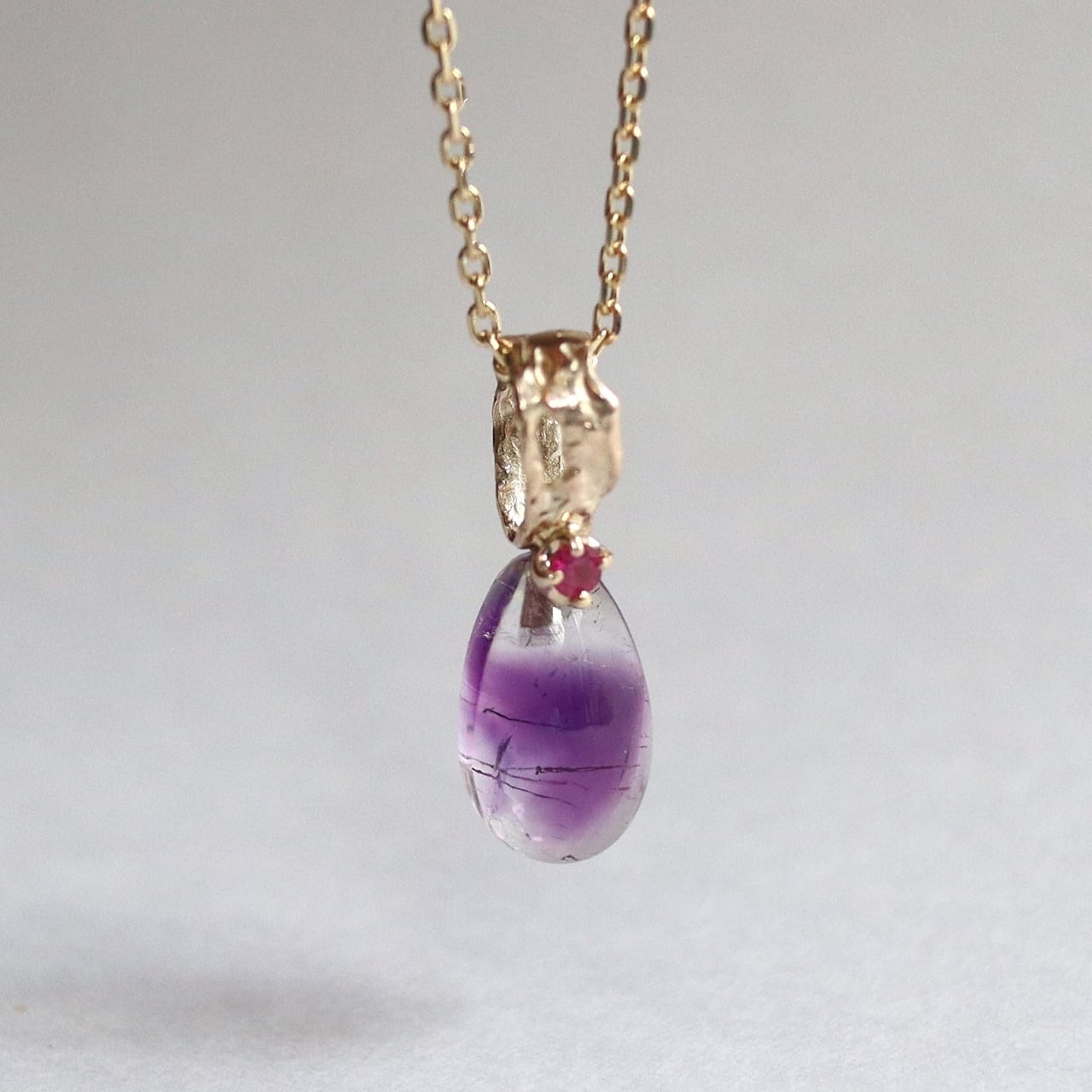 ひと粒の雫のように美しいバイカラーアメジスト。