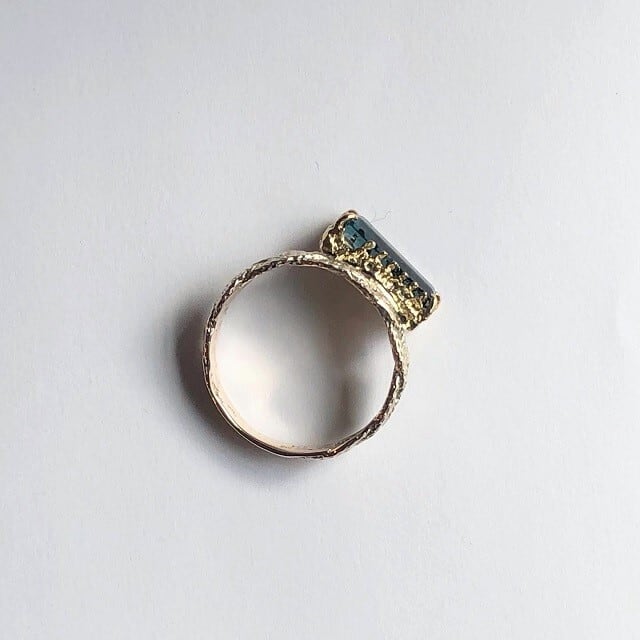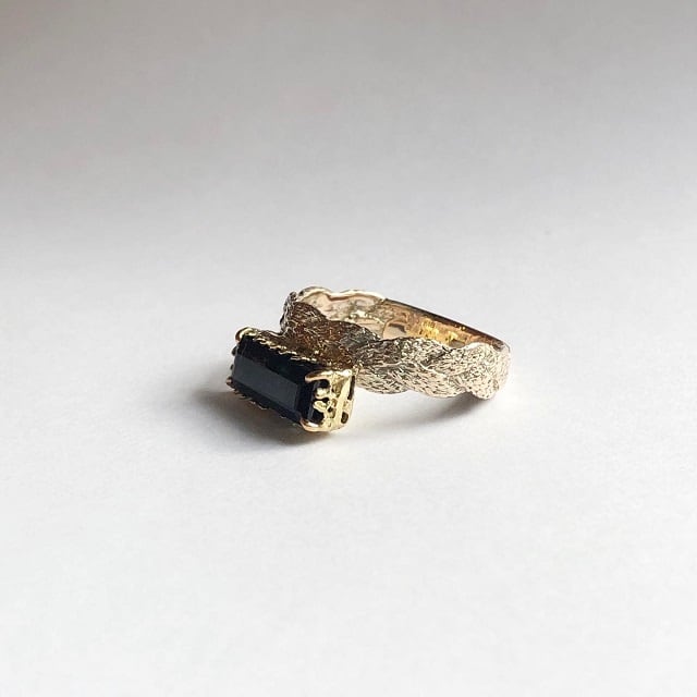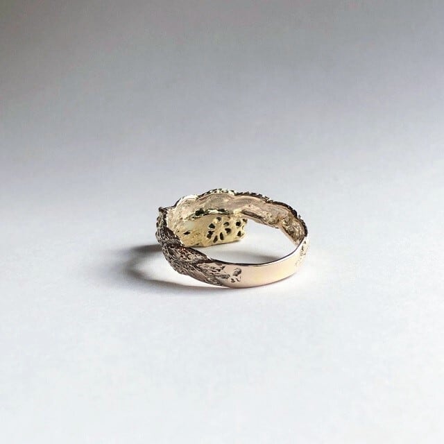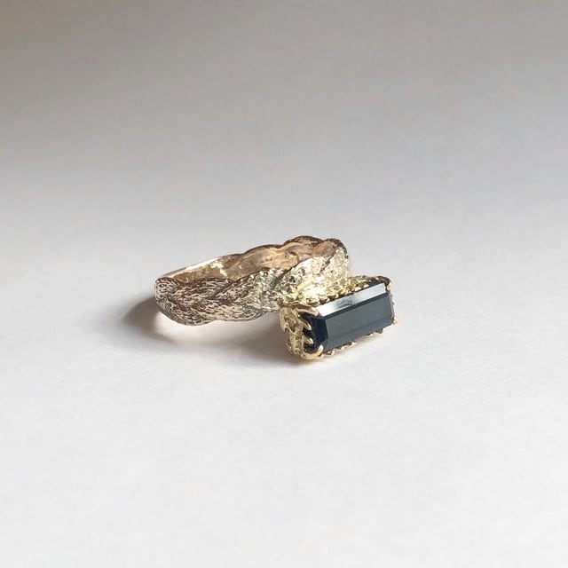 エメラルドとブラウンダイヤモンドを彫り留めし