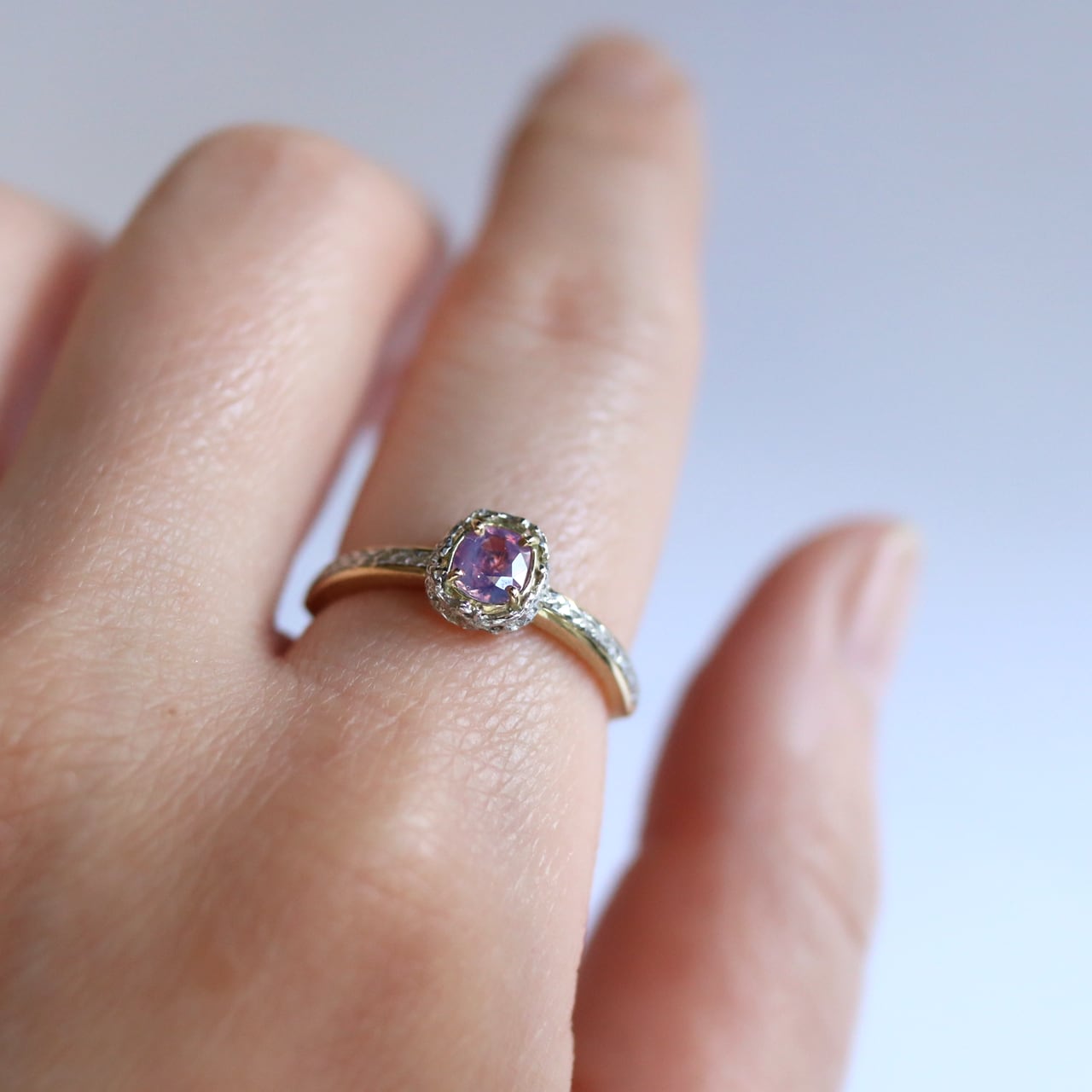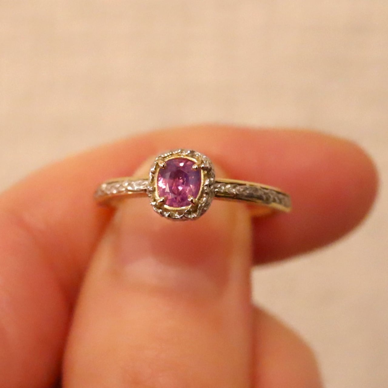 光源によって異なる色の変化が魅力のベトナム産のサファイア。